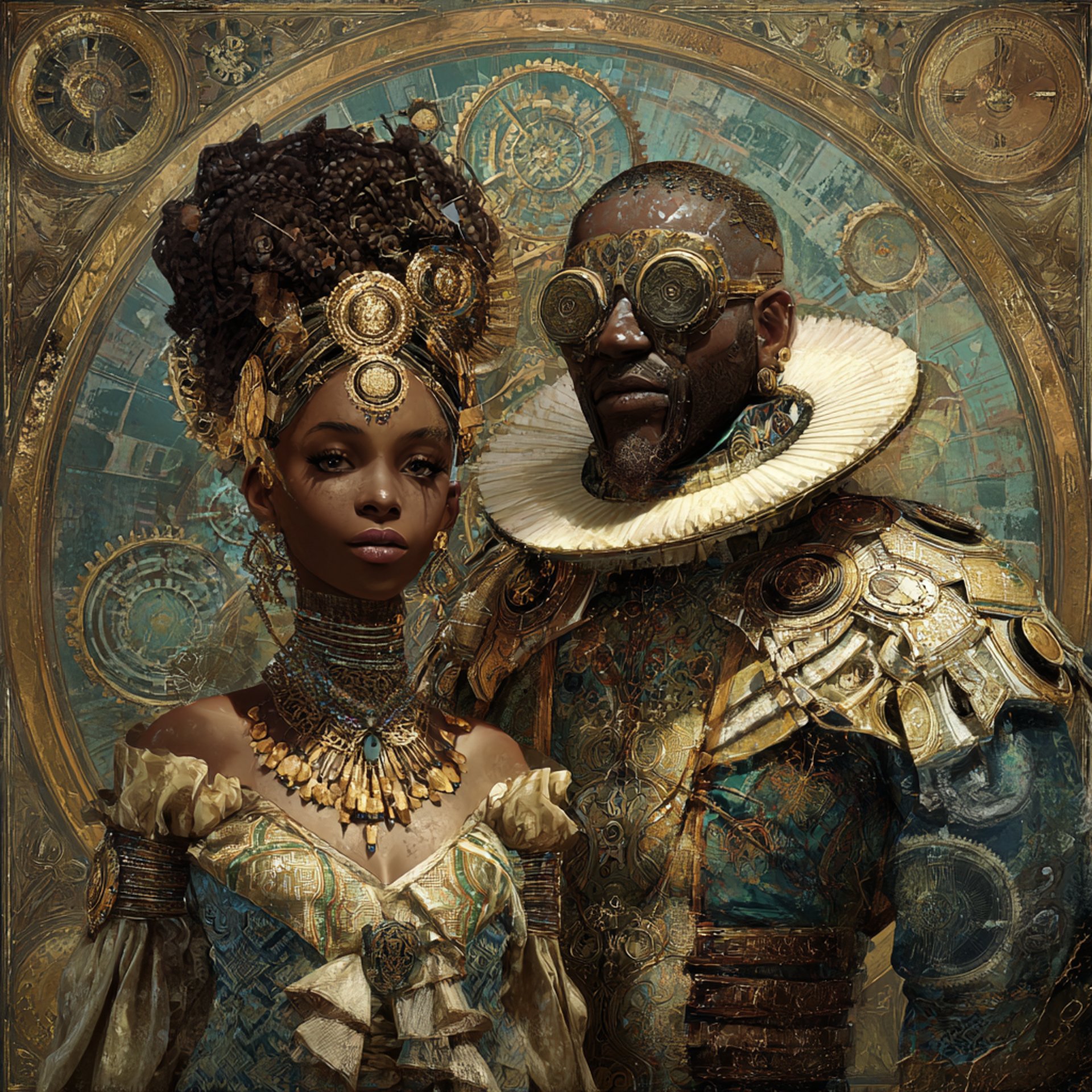 The Fable Boys dressed for memory. Their coats borrowed the architecture of Victorian restraint, high collars and structured shoulders, but every seam carried African mathematics. Brass fastenings etched with calendar glyphs. Brocade patterned after river deltas and trade routes rather than flowers. Sleeves weighted with small discs of time metal, tuned to vibrate when lies approached. Fashion became a civic duty. To dress wrongly was to misremember.